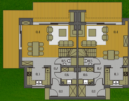0.4 pokój dzienny 26,3 m2 0.5 wc 1,9 m2